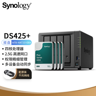 自營(yíng)群暉四核心四盤(pán)位網(wǎng)絡(luò)存儲(chǔ)服務(wù)器 數(shù)據(jù)備份服務(wù)器 DS425+配4塊群暉原廠(chǎng)16TB硬盤(pán)