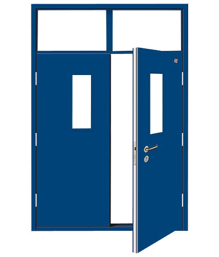 l 門框、門扇面板及其加固件采用冷軋鋼板。 l 鋼板厚度(mm):門框:1.2-1.5 l 門扇面板(mm):0.8-1.2無螺孔加固件(mm):1.2-1.5有螺孔加固件≥3.0 l 門扇和門框應(yīng)由不燃性材料填實。 l 鎖、合頁、插銷等五金配件的熔融測試不低于950℃ l 雙扇門間帶有蓋縫板,并裝有閉門器門框裝有密封槽,槽內(nèi)鑲嵌由不燃性材料制成的密封條。 l 耐火試驗進行54min:沒有喪失完整性;背火面最高平均溫升57.3℃,最高單點溫升98.8℃, 耐火極限>1.2h |